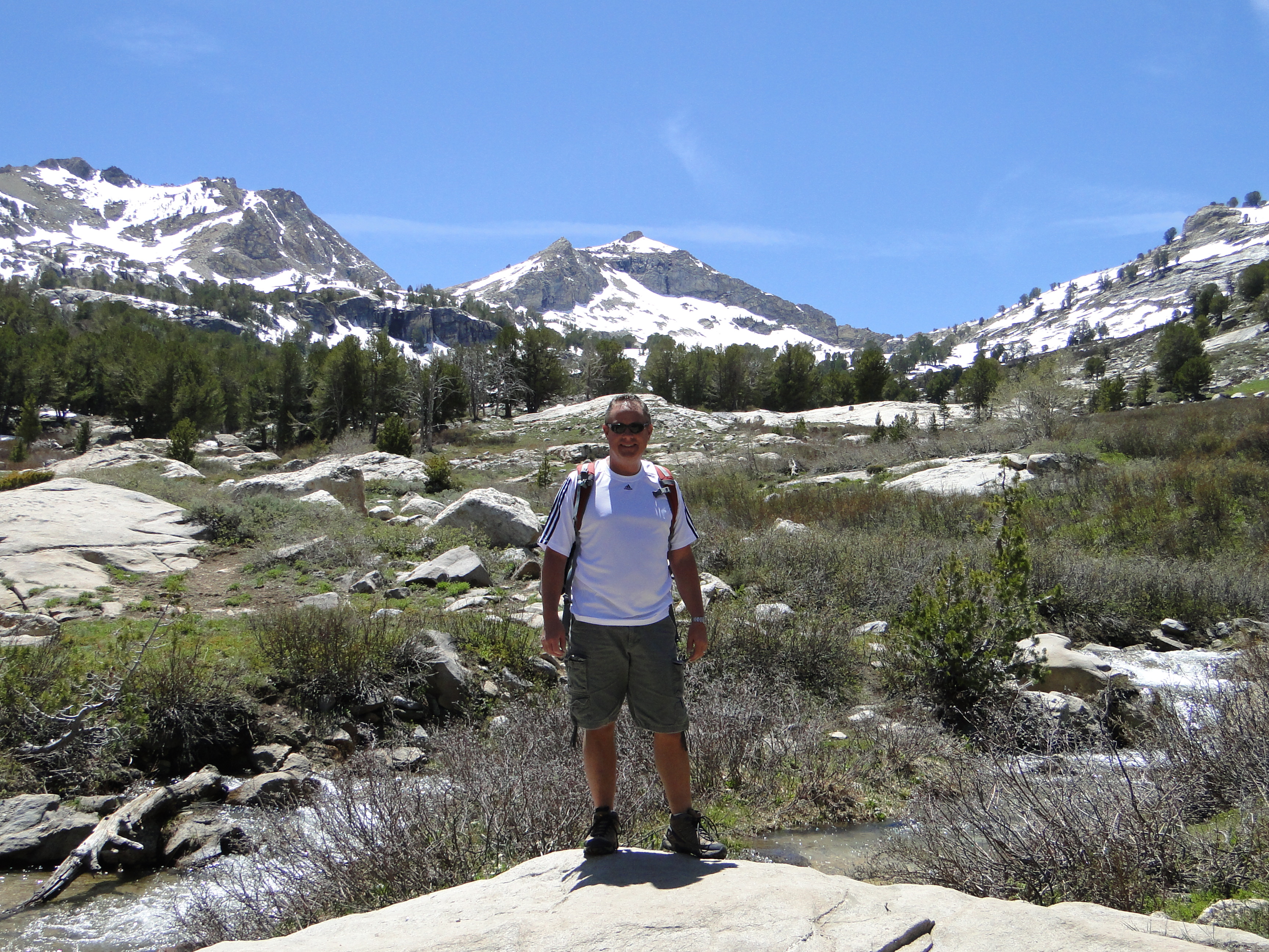The mountain above Mike's head feeds the lake that we hiked to.