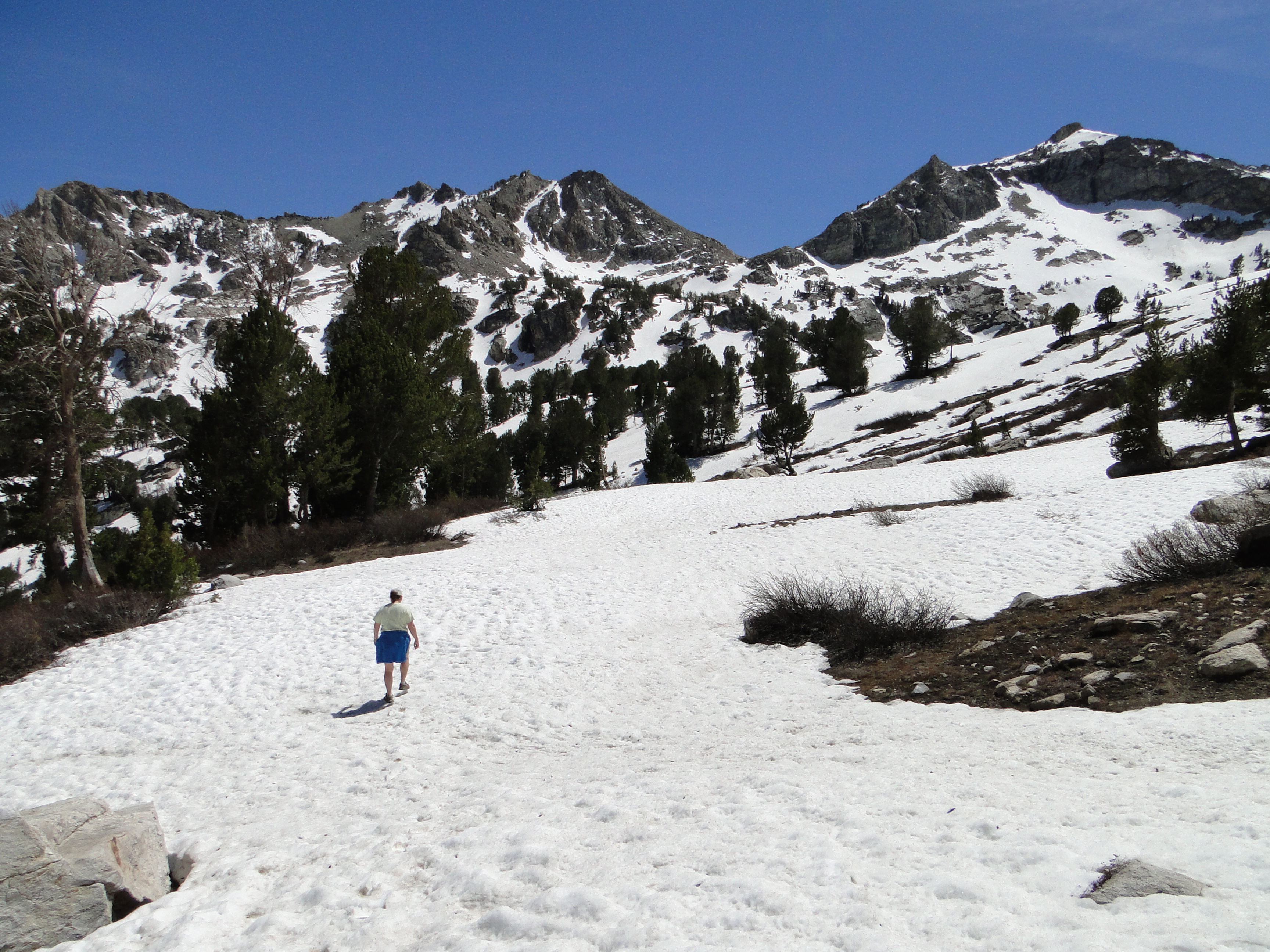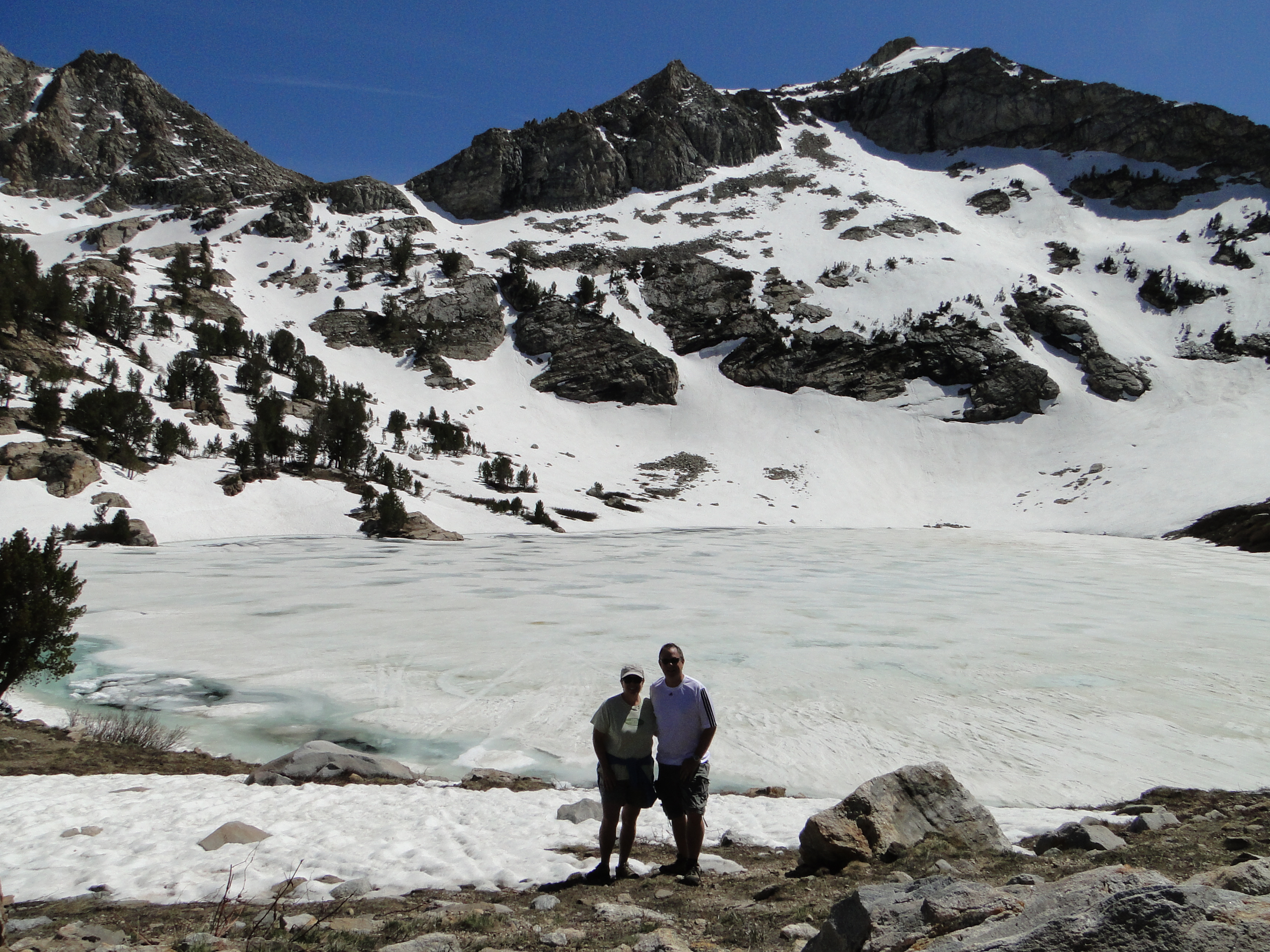 The mountain above Mike’s head feeds the lake that we hiked to.Traci hiking through the snow on the way to lake.Traci hiking through the snow on the way to lake.