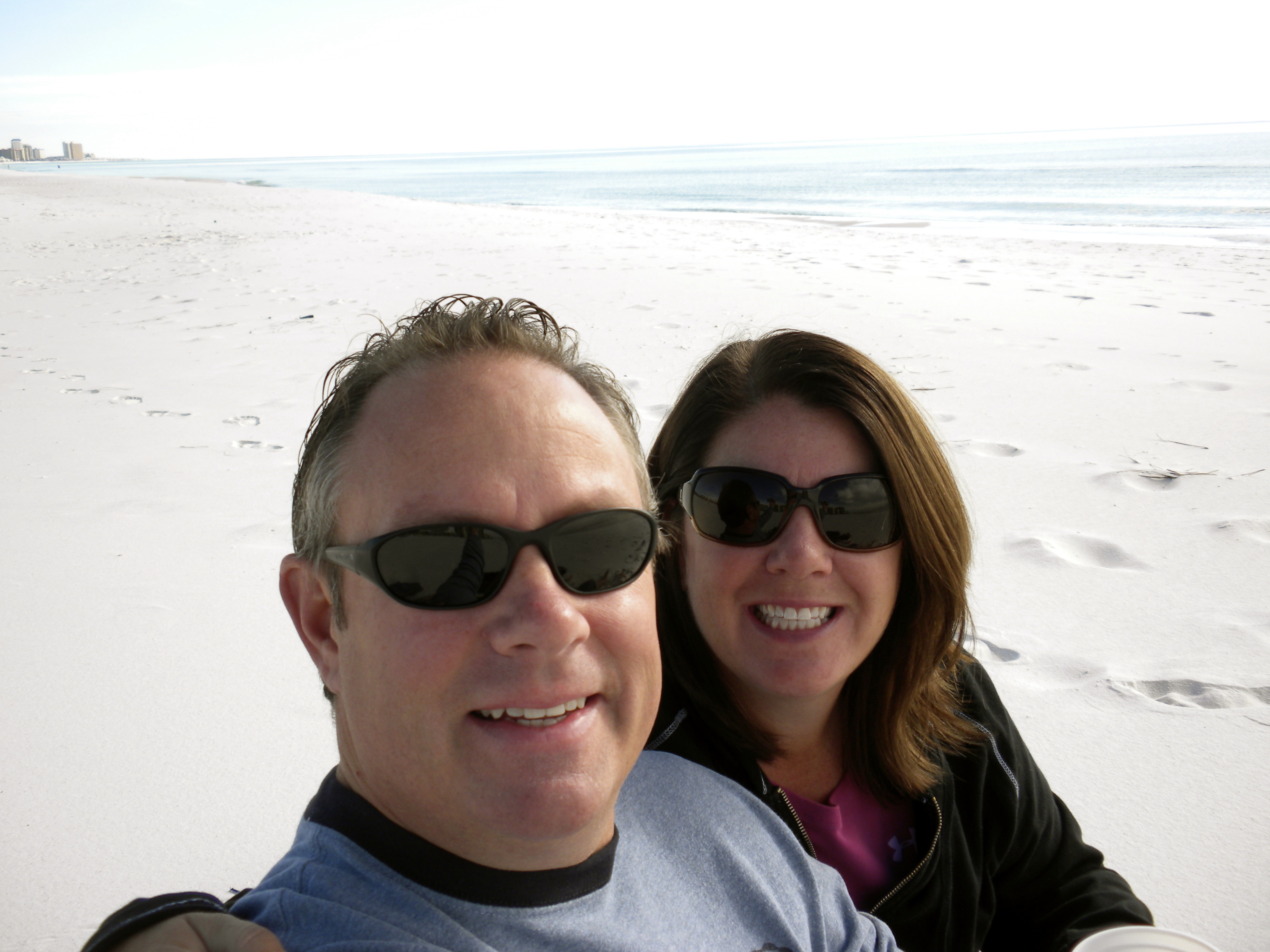 After 2 nights here, it was time to head to Florida!  Part of our routine when we are getting ready to leave is to check the tires.  Turns out they were low (we think due to the below freezing temps) and we couldn’t get them to pump up with our air hose.  So, we had a slight detour to find a place to pump them up.  A bit of a challenge since it was Christmas Eve, but we found a place and were on the road only about an hour behind schedule.  We arrived at the Emerald Coast RV Resort in Panama City Beach, FL in early afternoon.  Mike’s friend from high school, Pat Bunker, lives here with his wife Allison and soon to be Baby Bunker, due in Feb.  He owns Panama City Beach Maps, so knows many people in the town.  He hooked us up with a free 4-night stay at this nice place!  Awesome!   They invited us over to their home for handmade pizza (BBQ chicken was my fave) to celebrate with a group of their friends.  Both of their families live elsewhere, so they do an “orphans” gathering for friends in the area.  We felt right at home!