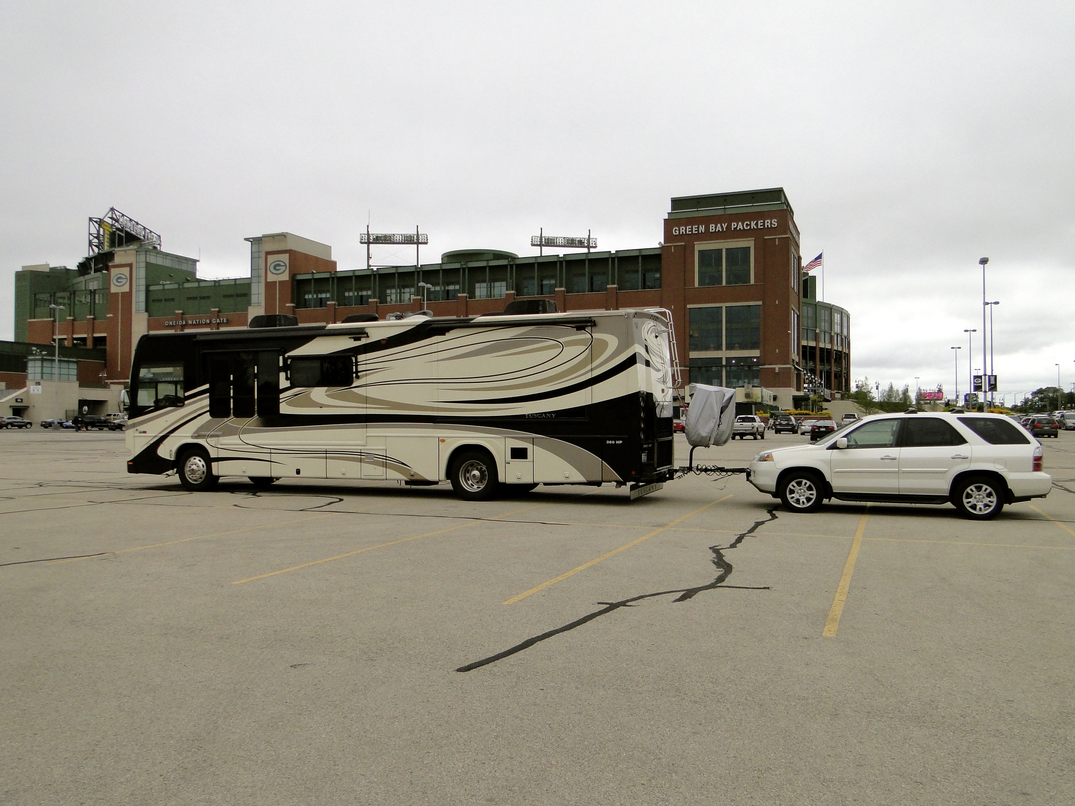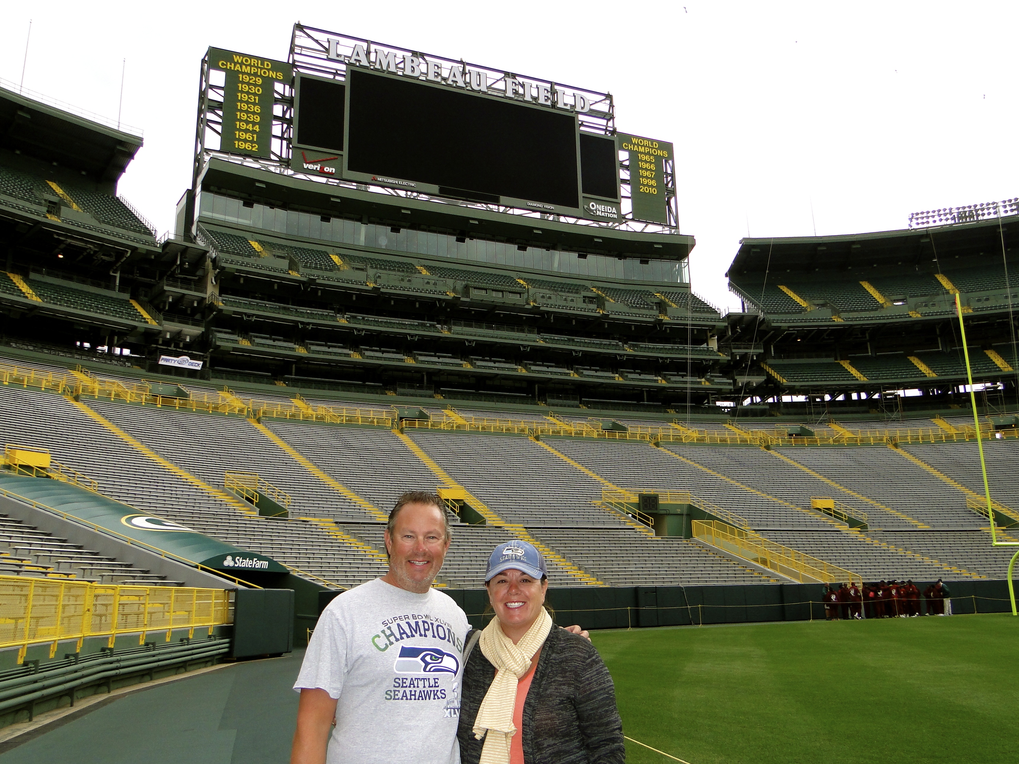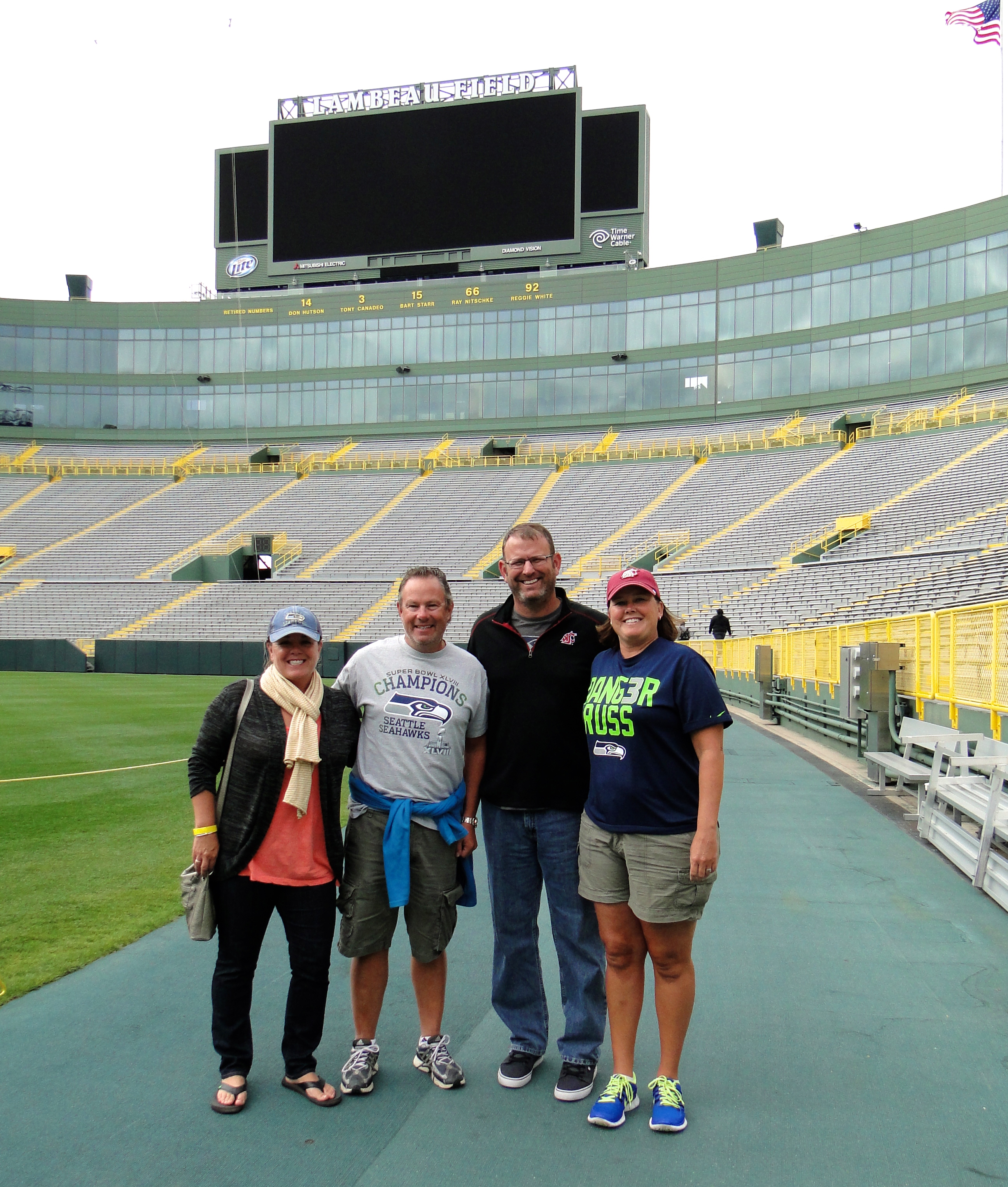 Travel day took us down out of Michigan and into Wisconsin, to the Village Inn on the Lake in Two Rivers, about 30 miles SE of Green Bay on Lake Michigan. Along the way, we decided to stop at Lambeau Field, home of the Green Bay Packers. Hoping to get in for a 1:30PM tour, we just missed it so had to wait till the 3:00PM. This gave us some time to look at the brand new pro-shop and pick up a few t-shirts. We then wandered around the outside before heading back in to Curley’s for an appy and beverage before the tour started. Bob and Patti, our tour guides, gave us a very thorough 2-hour tour, lots of insight to the history of the Packers, and seeing the stadium from all angles: roof top views, luxury box’s, press box, visitor’s locker room, and of course on the field. We had a great time and were very glad we stopped along the way to take in this great venue. We continued the drive down to Two Rivers, and got the MoHo settled. It was getting late, so we headed into town to find some dinner, and forgot that small town America closes down on Sundays, especially at 8:00PM. Fortunately we found a little joint on the beach in a hotel that was still open and had a decent meal. Back to the MoHo to finish our night, the Pflu’s were leaving us tomorrow for home, sad. It had been a great 9 nights with Marc and Shelly, and we are so glad they made the effort to come out and join us on our journey and experience the MoHo lifestyle. It takes a special group of friends to share 340 square feet for 9 days and nights; it could not have been any better!!