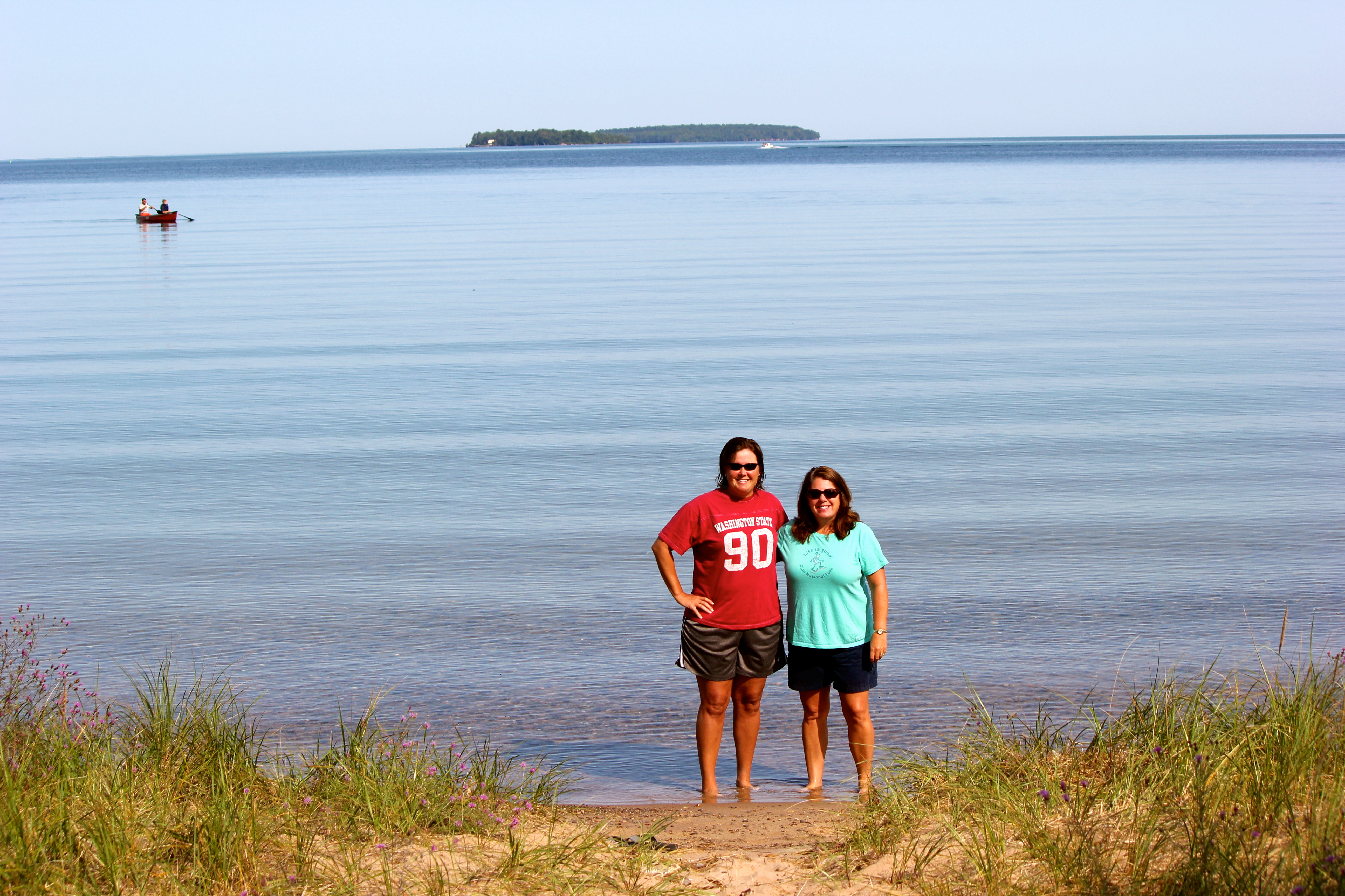 We headed out of our park in Detroit around noon, filling our propane tank on our departure. We decided to take the MoHo to the nearby rest stop, as the Pflu’s were arriving around 2:30PM from Seattle, and this was a very easy on/off spot for us to wait for their plane to land and us to head over and pick them up. This seemed to be a popular rest stop, not for the obvious reasons. There was the previously mentioned air show in Detroit this weekend. This rest stop was right in the flight path of the show so several other people had chairs out and were picnicking at the rest stop, watching the show. We just lucked onto it and it made the time go by much quicker. The text came in and Traci headed to the airport to pick up our guests, and returned to the MoHo with Marc and Shelly. Let the fun begin! We quickly hooked up the car, and headed toward Traverse City in the NW area of the lower peninsula of Michigan. The 6-hour trip went quickly, with Marc navigating and Shelly and Traci hanging out in the back chatting. We pulled into the Traverse Bay RV Resort and were immediately impressed with the park. I think our coach actually brought down the average price of the rigs in there; there were some impressive RV’s in this place! We bbq’d some brats and had some beverages and just caught up on life, a nice start to our 9-day visit.