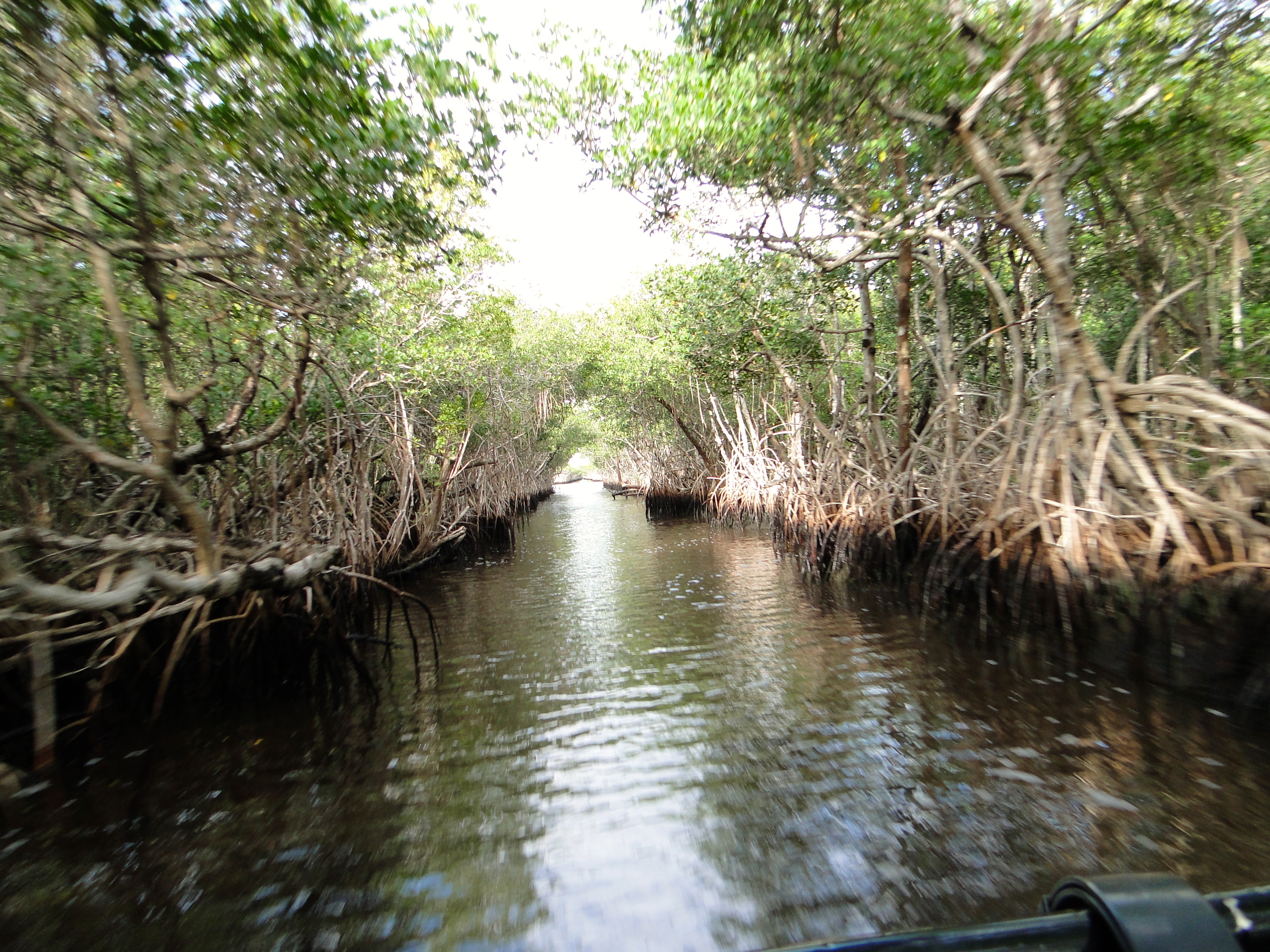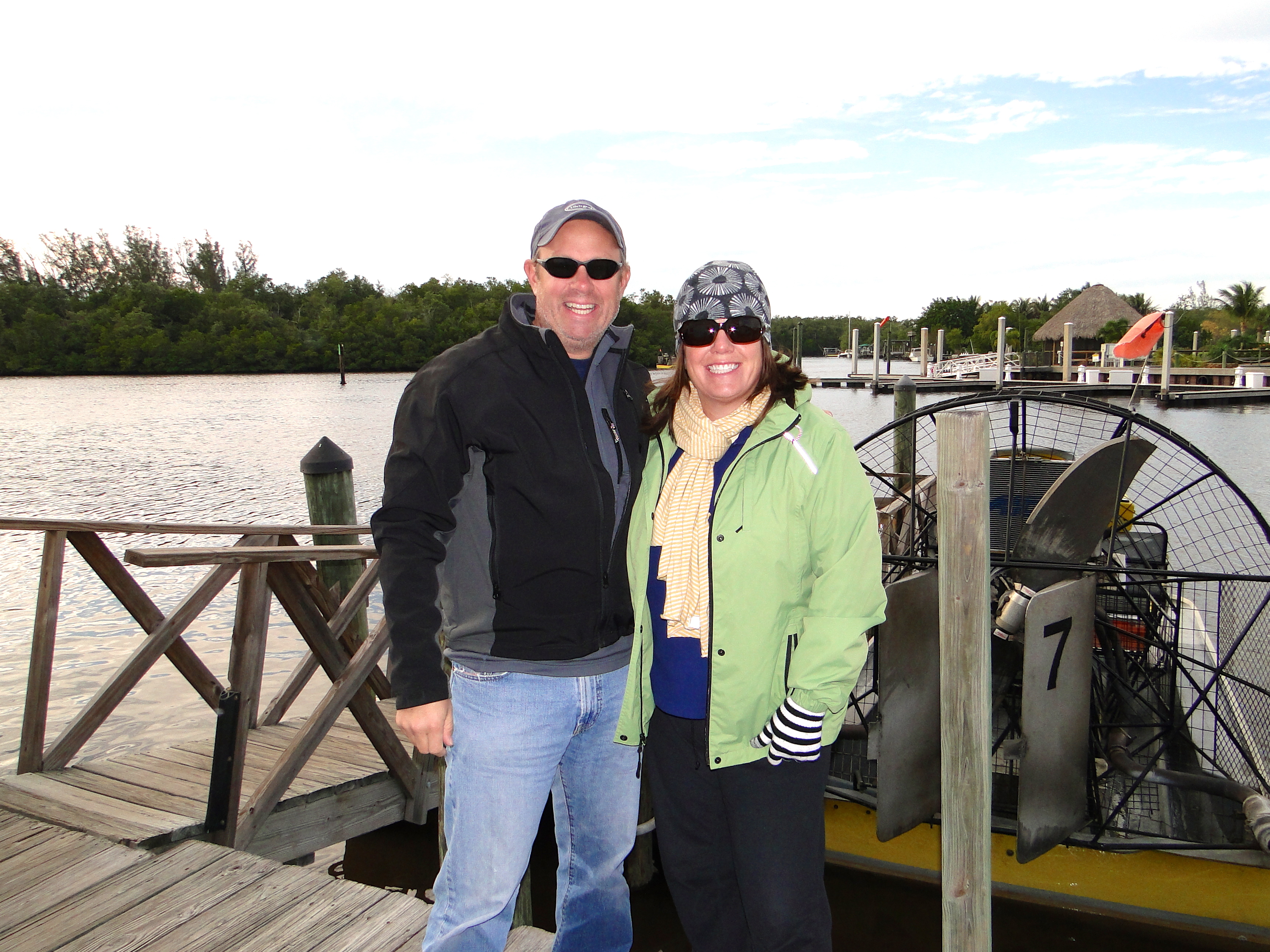 The next day we decided to take an airboat ride with Speedy’s. We got on board, and the driver took us back into the Mangroves, which are the main foliage here in this part of the Everglades. We meandered slowly through the tight, little, narrow passageways. Each turn it seemed like the route was getting tighter, but the captain knew his way. Then, he decided he had given us enough time to get used to the feel and sound, and he finally hit the throttle, and we are suddenly whizzing through the Mangroves! We emptied out into an open area and the captain did a full 180 and we stop on a dime! OK, now this was what we were expecting. We sped in and out of the Mangroves and grasslands for the rest of the one-hour tour, and then returned to the dock. It was pretty windy and cold, so no alligator sightings unfortunately. We headed back to the MoHo, headed up to happy hour and ended the night with dinner in the quiet comfort of our home.