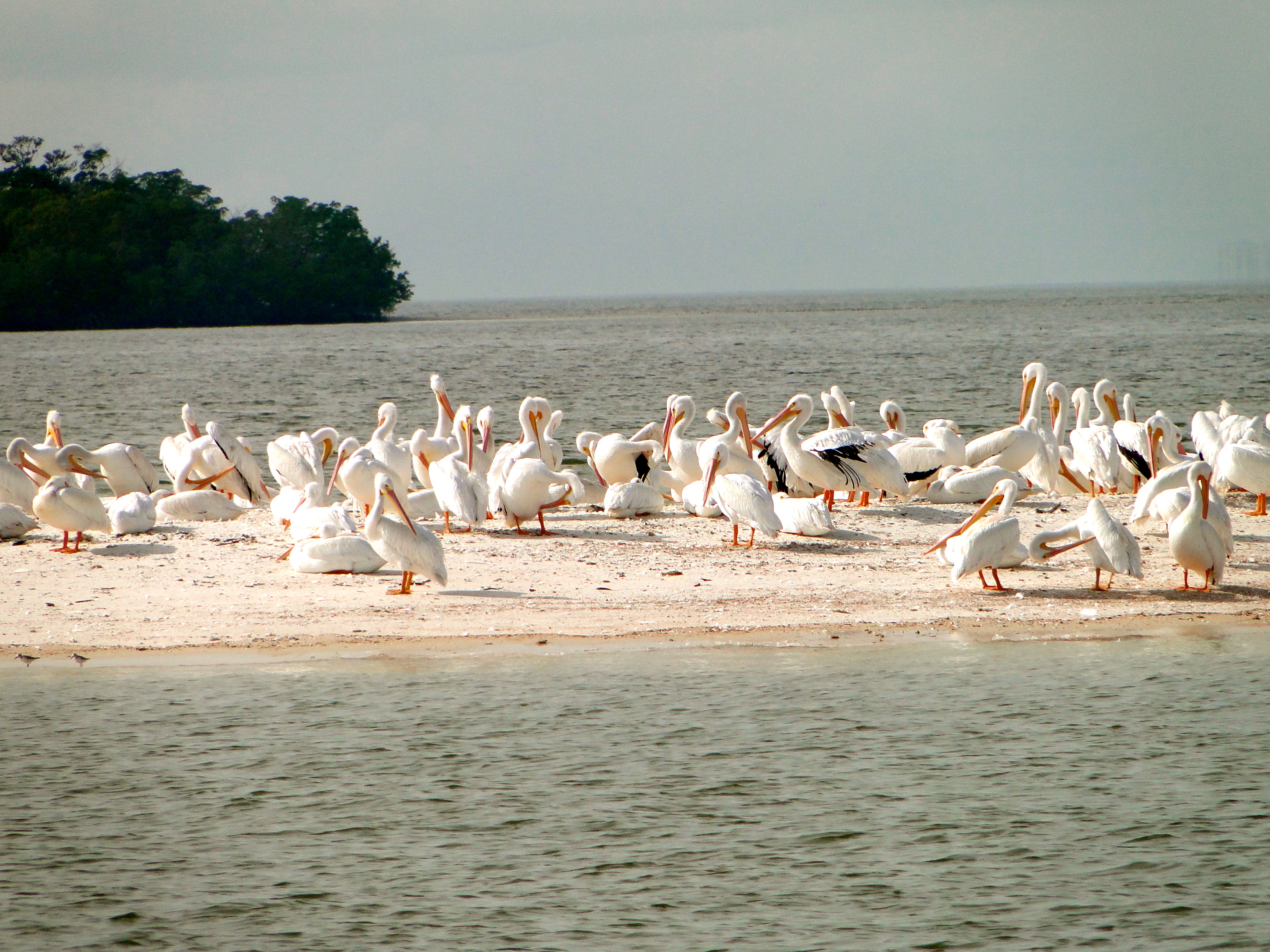 The next morning, we left Ft. Myers Beach and headed to Everglades City, about a 2 1/2 hour drive, just the kind of distance I like! Along the drive, we were surprised by a road sign we saw frequently, “Warning – Panther crossing.” We have all seen the deer signs and elk crossing signs, but Panthers? We did not see any along the route, but it did peak our interest. We arrived at the Everglades Isle RV Resort around noon. When we pull in to most parks, we stop at the front to check, as we did here. We went into the office, and immediately realized this was not your average RV park. The office was just a tiny little corner of the massive clubhouse. After checking in, getting the MoHo set up, we wandered the grounds of the park. The clubhouse had it all; a full service bar, open nightly for happy hour at 4:30PM, nice shower facilities with complimentary towels, free laundry, a well-equipped gym, a movie theater and a nice little spa. The outdoor pool and hot tub were just off the main clubhouse, and there was a small mini service bar out there as well and a boat ramp. This place was top of the line. We returned to the MoHo and our site was perfect. We faced the Barron River, just 10 feet from the front of the rig. There were airboats coming and going up and down the river constantly, and tons of pelicans everywhere. Our site was one of the best we have stayed in yet. Plenty of room; very deep so we could set up anywhere on the pad and not feel too cramped, and very wide so we could put out our Dream Turf – the artificial grass we carry along with us. The only problem we could find here, were the No-see-ums. If you haven’t experienced these before, they are like mosquitos but worse because you can’t see them. Their bites turn into little red spots and they itch like crazy. We both got our fair share of bites. We relaxed for the afternoon and headed up to happy hour at 4:30PM and we were greeted by the bartender Sandy. She was staying just a couple sites down from us, and was working her first night behind the bar by herself, and she was perfect. We enjoyed getting to know her each night at happy hour and hope to meet up with her and her husband Gene this summer in NY. We headed back to the MoHo for dinner and catching up on some college football games.